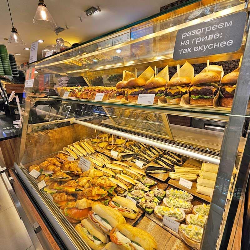 All cafés are takaway but you can enjoy your meal on the indoor balcony or outdoor summer patio.